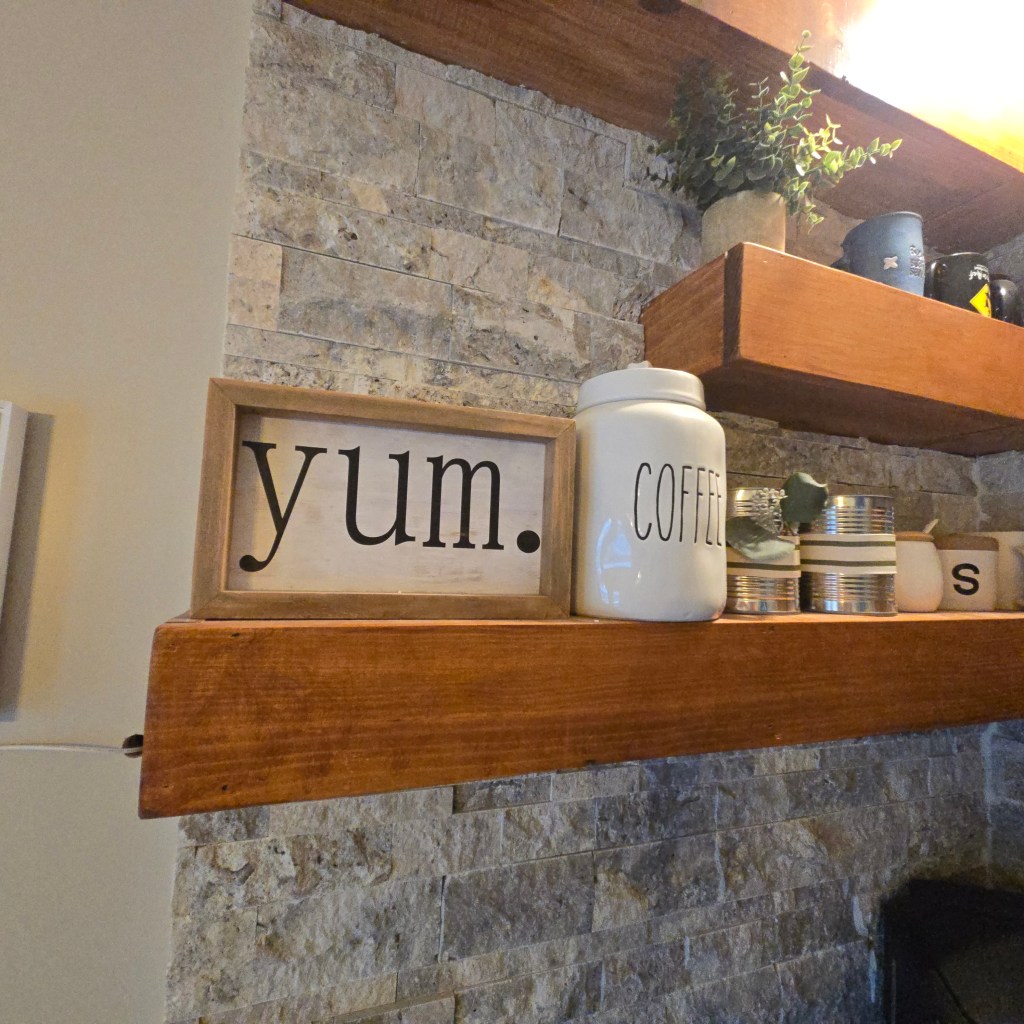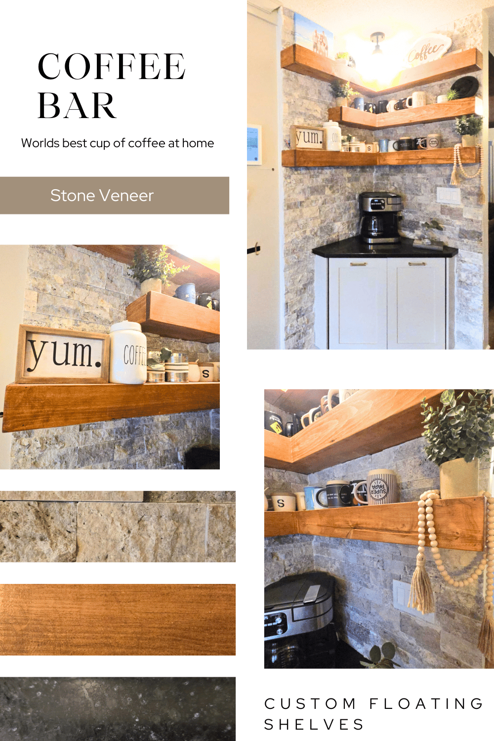 If you love this look and want sources for the stone veneer, shelving materials, styling pieces, and coffee bar accessories, head over to my Pinterest page where I’ve linked everything for easy shopping and inspiration.