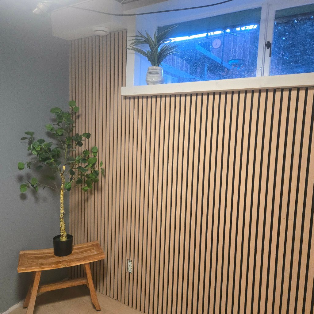 Acoustics: noise-canceling wall panels Because it’s a basement and because teenagers — noise — I installed noise-canceling acoustic wall panels. They’re not just functional; they also add texture and depth to the room. We placed them strategically near the desk nook and on one accent wall to reduce echo and improve sound control for study sessions, gaming, or music. The panels are simple to mount and make a noticeable difference in the room’s acoustics.
