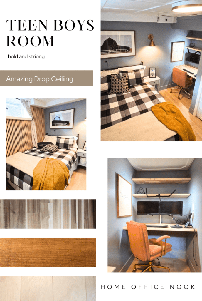 The outcome: a transformed, livable space What started as “just paint” turned into a full renovation that left us with a safer, quieter, and much more functional bedroom. The space now has a modern floor that stands up to wear, walls in a calming Cadet Blue, improved acoustics, and a ceiling that actually feels like a ceiling — not a basement afterthought. The office nook is a favorite feature: compact but perfectly suited to studying and gaming. Most importantly, it’s clean, dry, and comfortable — exactly what you want when you’re redoing a basement bedroom for a teen.
